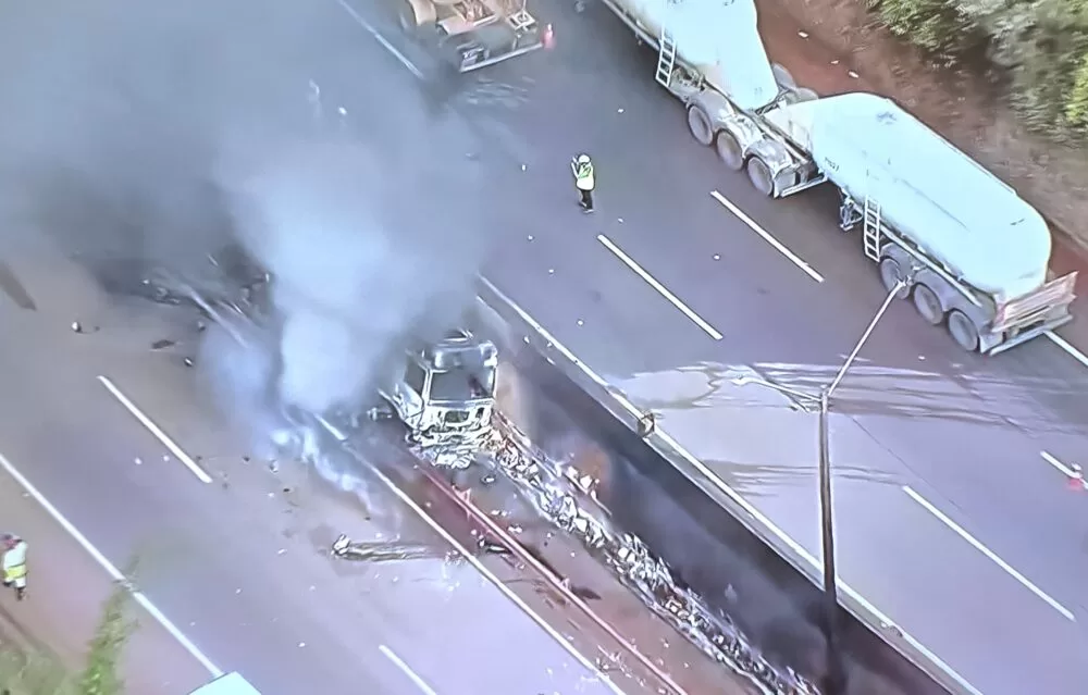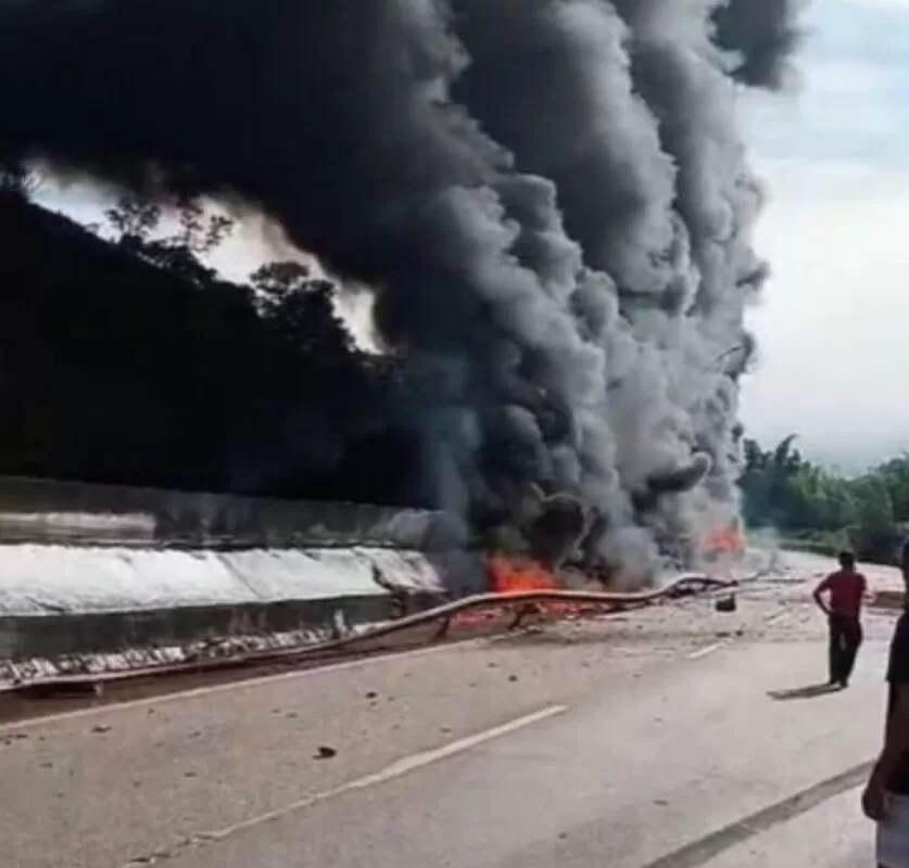 Segundo informações de testemunhas, um caminhão carregado com combustível e outro com thinner colidiram, provocando uma explosão seguida de incêndio. As chamas se alastraram rapidamente e consumiram completamente os dois veículos.